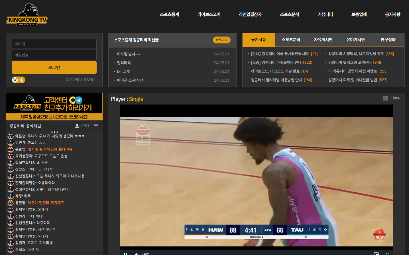 ✅ 킹콩티비도 별도의 회원가입없이 시청가능하나 채팅에 참여하려면 회원가입 및 로그인 필수 입니다.