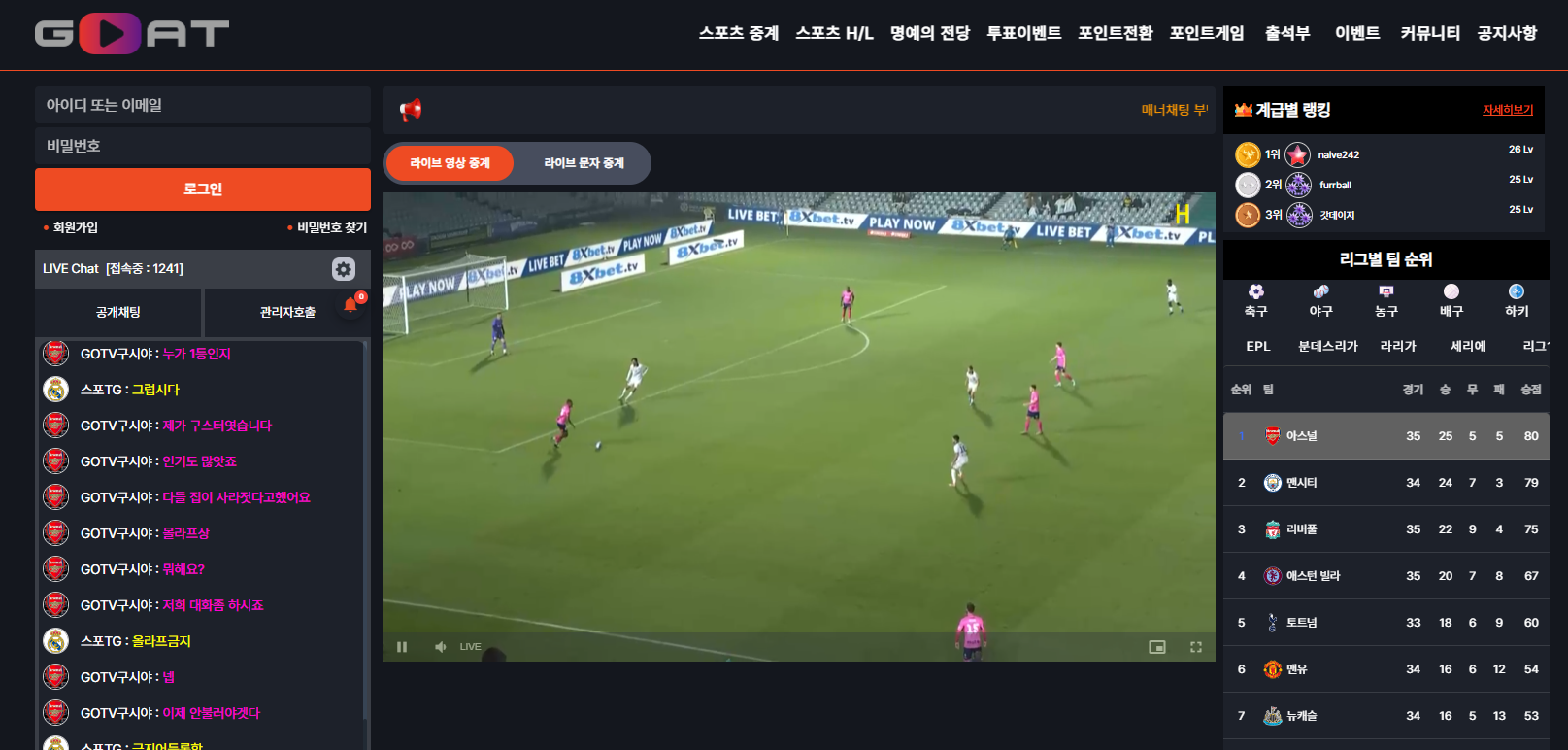 1. 고트티비(Goat TV) - 프로야구, 축구, 농구 실시간 보러가기