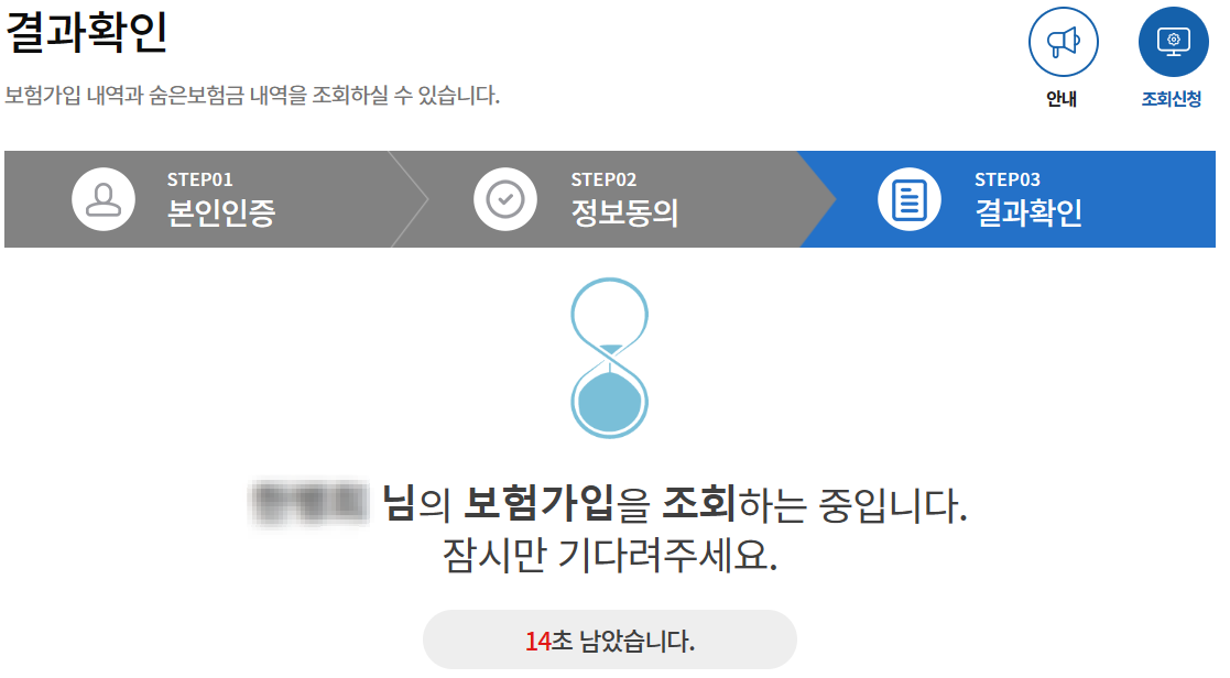 보험가입내역, 미청구보험금, 휴면보험금 등을 결과를 보실 수 있습니다.