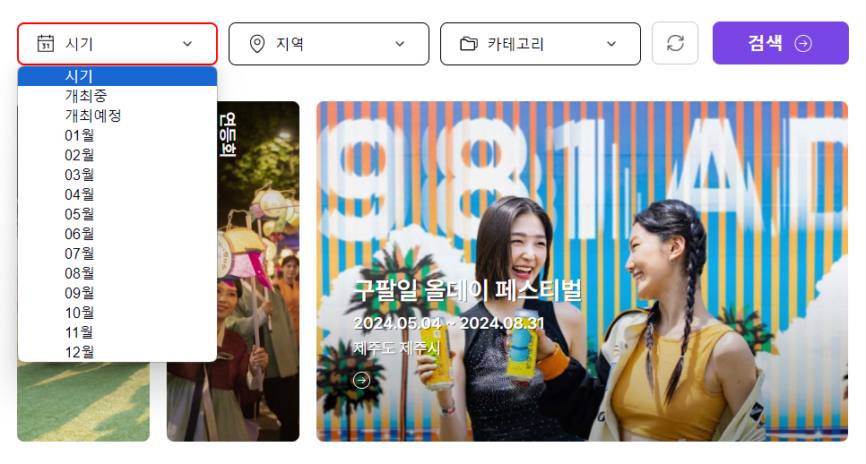 시기 또는 지역, 카테고리만 설정하여 검색할 수도 있으니 기호에 맞게 조회해 보시기 바랍니다.