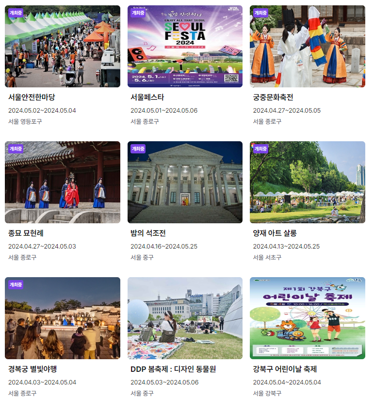 4. 예시) 2024년 5월 2일 현재 서울에서 진행되고 있는 축제는?